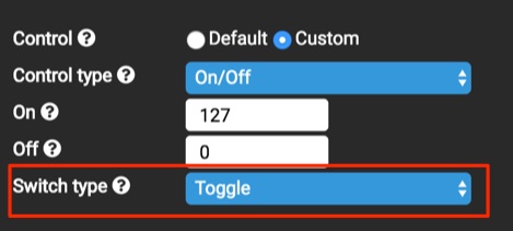 To see the toggle/momentary options, you’ll need to change ‘control type’ from absolute to on/off then the menu will appear.