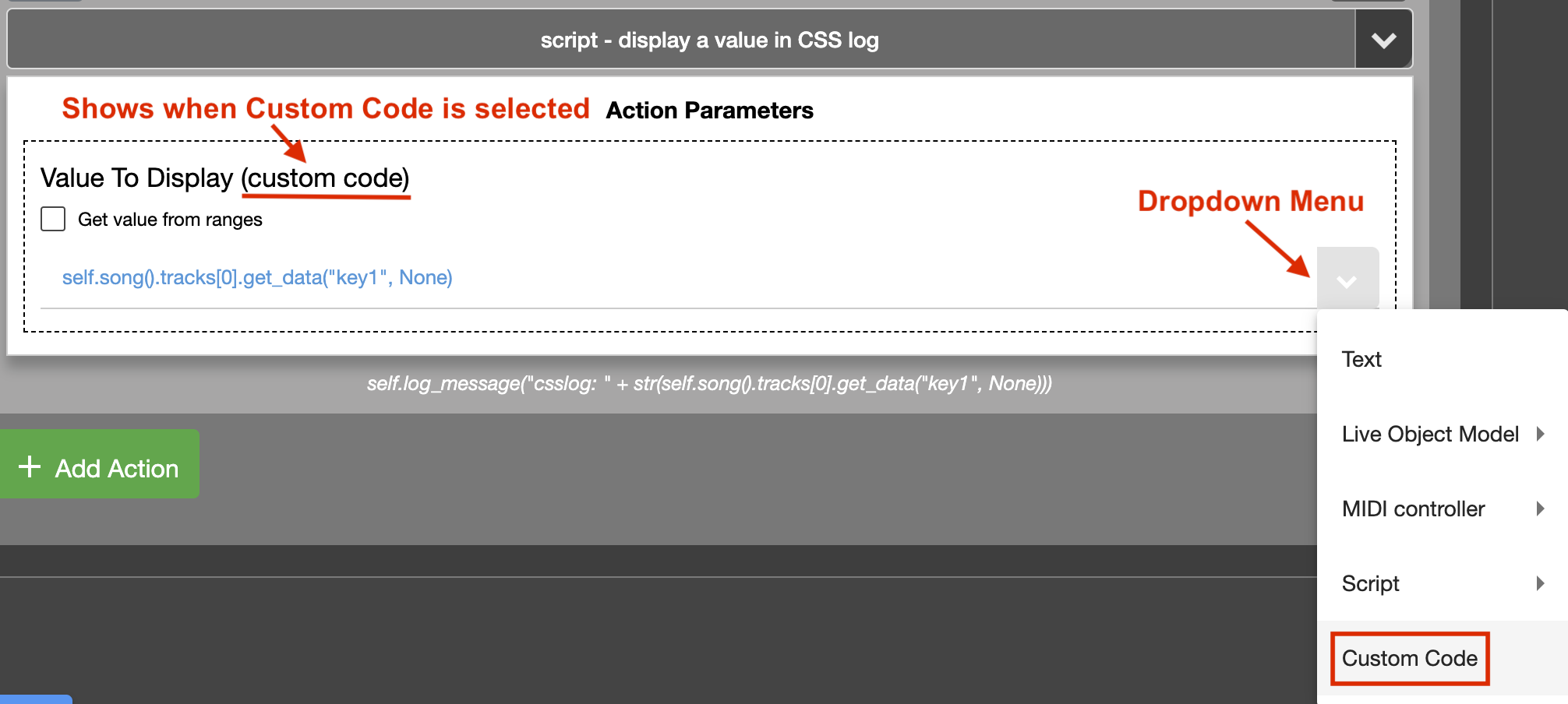 CSS can help you in finding the correct code construction whenever you’re unsure. In the next picture I made a temporary Set Name Action from the TRACK submenu to find out how the code points to a Track: