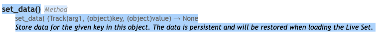 Reminder: for whatever you’ve set using set_data to persist over other Ableton Session, you’ll need to have your current Ableton Session saved before you quit.