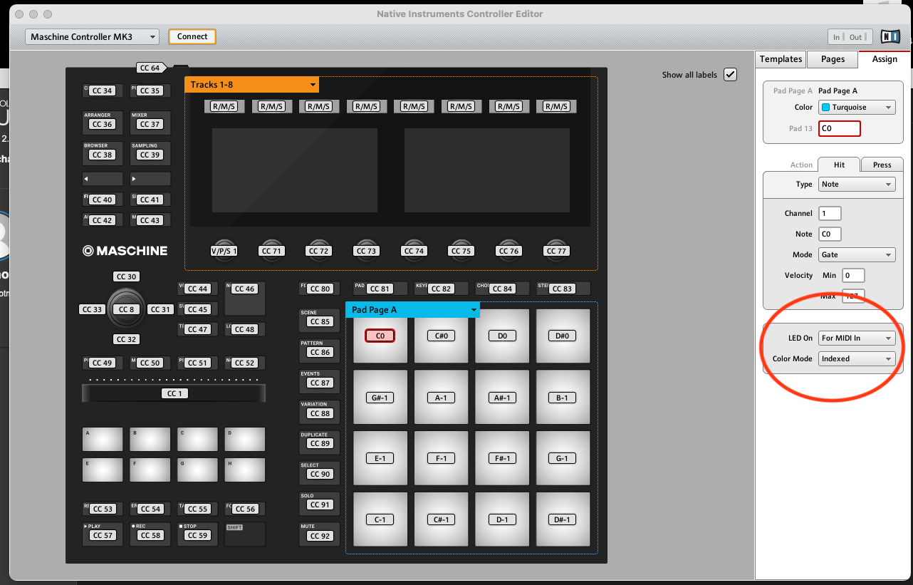 As the coloring of the pads is done by the Native Instruments Controller Editor, I canĀ“t set the color in CSS. When i send different velocity values to a pad, nothing changes, except for on and off – but the color always remains the same as i set it in the Native Instruments Controller Editor software.
